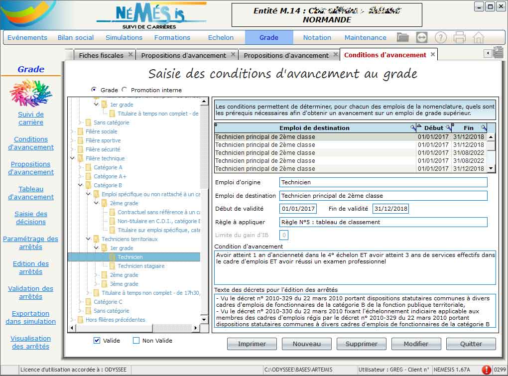 - A partir des données réelles du logiciel de paie ARTEMIS, NEMESIS calcule les propositions d’avancement de vos agents : A l’échelon - Au grade,