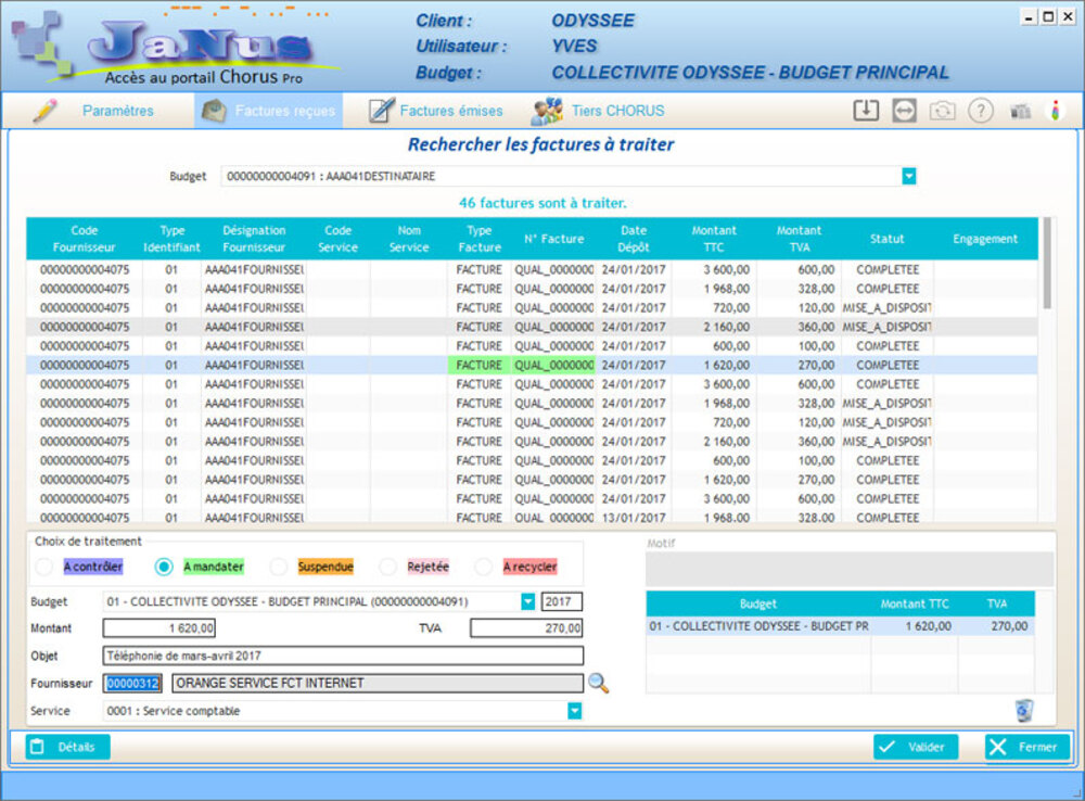 FonctionnalitésCRONOS permet : Pour les factures reçues :